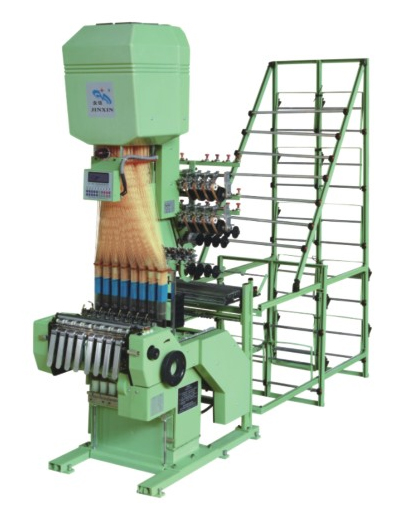 La máquina tejedora de Jacquard de tela estrecha es adecuado para telas elásticas ligeras a medianas y no elásticas estrechas. La máquina de tejer está diseñada con 53cm de ancho, además puede tejer 4 cintas a la vez, cada una con un ancho máximo de 66mm y ganchos de 192.
