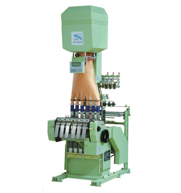 La máquina tejedora de Jacquard de tela estrecha es adecuado para telas elásticas ligeras a medianas y no elásticas estrechas. La máquina de tejer está diseñada con 53cm de ancho, además puede tejer 4 cintas a la vez, cada una con un ancho máximo de 66mm y ganchos de 384.