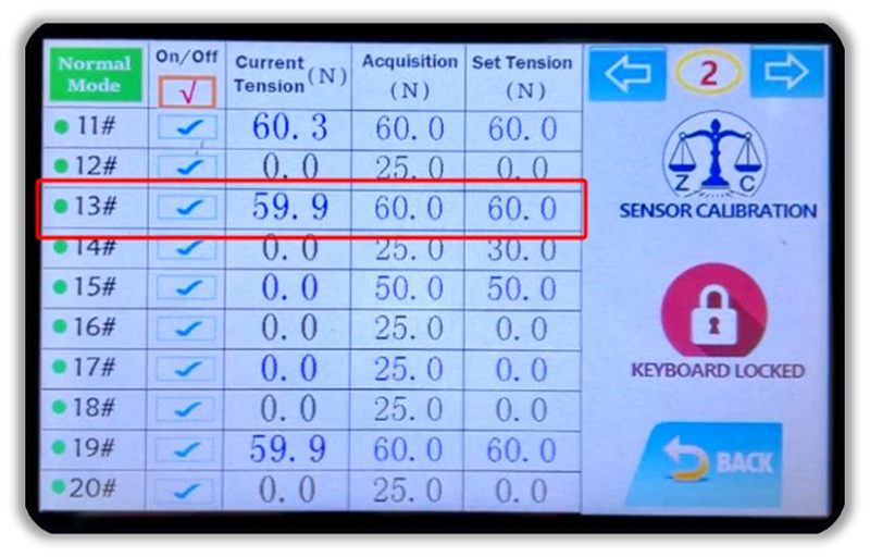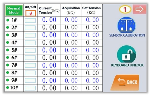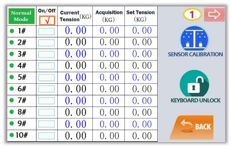 Nuestra fileta combina un sistema de control sofisticado con una interfaz intuitiva que hace más sencilla su manejo. Tiene cuatro páginas en esta interfaz, cada una de ellas ofrece una visualización clara de diez posiciones del haz de urdimbre, permitiendo un total de cuarenta posiciones para una gestión precisa.
